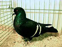 The Starling is a breed of fancy pigeon, developed over many years of selective breeding. They are known for their iridescent feathers. Starlings, along with other varieties of domesticated pigeons, are all descendants from the rock pigeon (Columba livia).[1]