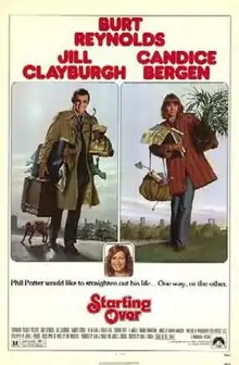 Starting Over is a 1979 American comedy film based on Dan Wakefield's 1973 novel, produced by James L. Brooks, and directed by Alan J. Pakula. Starring Burt Reynolds, Jill Clayburgh, and Candice Bergen, it follows a recently divorced man who is torn between his new girlfriend and his ex-wife.