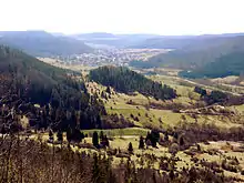 From the White Jurassic to the Muschelkalk the Starzel passes through all layers of the Jurassic and about two thirds of the Triassic. Its valley was formed by retrograde Erosion, in that the stream from the northwest cut deeper and deeper into the strata of the Swabian Alb and its foreland. The valley of the Starzel river intervenes eleven kilometres into the plateau of the Swabian Alb and is bordered in the west by the 957 high Raichberg and in the east by the up to 840 meter high hayfield. It begins with the source area of the Starzel and its tributaries at the watershed between the river system of the Rhine and that of the Danube. A special feature are the so-called waterfall layers, a hard sandstone, which is bedded over leafy shale clays. Between Jungingen and Schlatt the Starzel has formed an eight meter high waterfall, the Junginger Gieß. For long stretches it moves in a near-natural stream bed. Between Jungingen and Hechingen it has deepened like a canyon.