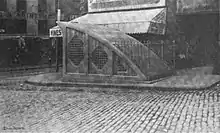 The Blue Line section of the station was built along with the rest of the East Boston Tunnel in the first years of the 20th century and opened on December 30, 1904, serving streetcars running from downtown to East Boston.[15] An unusual aspect of State Street station is the entrance built directly into one of Boston's best-known historic sites, the Old Massachusetts State House. The East Boston Tunnel station was originally known as Devonshire after the street which the Old State House is located on. The station is the only remaining station on the tunnel opened in 1904.
