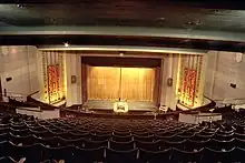 In front of the centre of the stage is a fully illuminated three manual 6 rank Compton organ which is able to rise from the orchestra pit on a lift. It can be seen being played in a BBC TV production of Dennis Potter's Lipstick on Your Collar.[14]