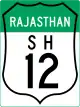 State Highway 12 ( RJ SH 12) is a State Highway in Rajasthan state of India that connects Sanganer in Jaipur district with Kankroli in Rajsamand district of Rajasthan. The total length of RJ SH 12 is 324.20 km. It serves as a link from Kankroli, Rajasthan to Sanganer, Jaipur. The main city on this route is Kekri. It is an industrial road from Kekri to Sanganer, Rajasthan. There is only one toll station on this road out of Malpura.