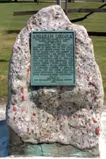 On February 11, 1861, Abraham Lincoln stopped in State Line on his way from Springfield, Illinois, to Washington, D.C., for his inauguration. He dined at the Frazier Eating House, then gave a short speech to a crowd in the public square before resuming his journey. A historical marker on the site commemorates the event, and records the words which Lincoln spoke: