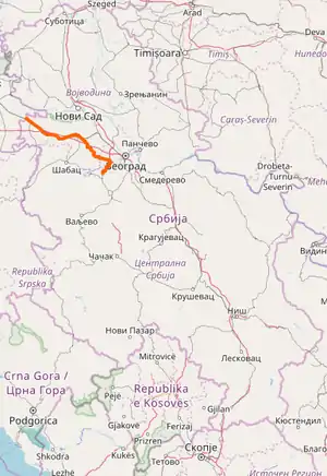 | 12009 | 13.673 km (8.496 mi) | 77.732 km (48.300 mi) | Ruma (Pećinci) – Pećinci (link with |
