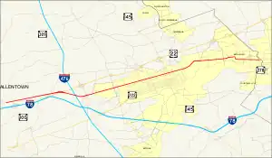 | Allentown | 7.237 | 11.647 | SR 1017 north (19th Street) | Formerly US 309 and PA 29[16] | |