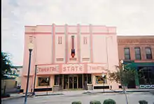 State Theatre is a historic theater building in Plant City, Florida.[1][2] It is located at 111 W. J. Arden Mays Boulevard. The theater opened in 1939, closed in the 1950s and was then used as an antique and collectibles store (State Theatre Antiques).[1][3] The pink building with blue trim is an example of art deco architecture.