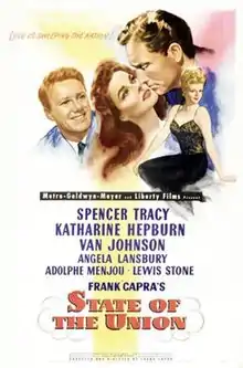 State of the Union is a 1948 drama film directed by Frank Capra about a man’s desire to run for the nomination as the Republican candidate for President, and the machinations of those around him. The New York Times described it as "a slick piece of screen satire...sharper in its knife-edged slicing at the hides of pachyderm schemers and connivers than was the original."[5] The film was written by Myles Connolly and Anthony Veiller and was based on the 1945 Russel Crouse, Howard Lindsay Pulitzer Prize-winning play of the same name.