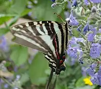 The firefly or lightning bug (Lampyridae family) and the insect known as ladybeetle, ladybug, or ladybird beetle, Coccinella septempunctata, were designated state insects by Public Chapter 292 of the Acts of 1975. The firefly species Photinus pyralis is the most familiar firefly species in the state.[1] In 1990, Public Chapter 725 designated the honeybee (Apis mellifera) as the official state agricultural insect.[1] Most recently, in 1995 the zebra swallowtail, Eurytides marcellus, was designated Tennessee's official butterfly by Public Chapter 896 of the 99th General Assembly.[1] |