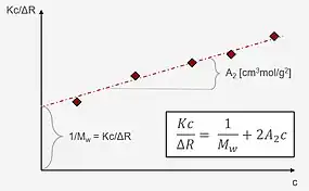 Calculation of molecular mass by static light scattering measurement using Debye plot[7]