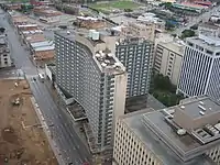 | Buffalo | 1923 | Hotel Statler Buffalo The Statler Hilton Buffalo Statler Towers Statler City | The second Buffalo Statler was gradually converted to offices starting in 1948 (when WBEN-TV began using the building as their first studios) because it had more hotel rooms than the city could support. In 1984 the last hotel rooms were closed and the building was renamed Statler Towers, although its ballrooms remained in use for catered events and banquets. After a failed renovation attempt into a combination of hotel and condos in the late 2000s, the building went into bankruptcy, and was auctioned in August 2010. On March 15, 2011, the property was acquired by local developer Mark D. Croce, who immediately began refurbishing the building as Statler City. The public rooms on the lower floors reopened on Dec 31, 2011 with the upper floors set to reopen later.[5] After Croce's death in 2020, Douglas Jemal of Washington, D.C. acquired the building, having recently purchased Seneca One Tower in 2016.[6] Jemal has begun work to convert the lower levels to a casino and the upper levels to 600 apartments.[7] Located in the Joseph Ellicott Historic District. | ![]() |