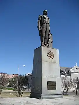 The statue of Juarez was part of a project launched by New Orleans Mayor Chep Morrison in 1957, in which a median on Basin Street would become a monument to New Orleans' place in the geopolitical history of the Western Hemisphere, dubbed the "Garden of the Americas",[3] which would also come to include monuments to Simón Bolívar and Francisco Morazán.[1] In 1965, the Mexican government gifted the city with the statue of Juarez, which was then placed in the neighborhood in which Juarez resided while exiled. On May 17, 1972, the one hundred year anniversary of Juarez's death,[1] the statue was dedicated by the XII Mexico United States Inter-parliamentary Conference.[4] The sculptor of the statue is Juan Fernando Olaguíbel.[1] The statue is located at 1200 Conti St. Other statues of Juarez can be found in Washington D.C., New York City, and Chicago.[3]