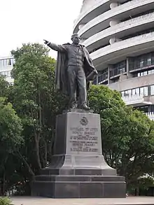 In 1993 the Smithsonian Institution's Save Outdoor Sculpture! surveyed the sculpture and stated its conservation status as well maintained.[1] Starting in November 2011, the National Park Service began repairs and rehabilitation on the monument and plaza. The base of the statue deteriorated, needing repair, and in November 2005 temporary restraining was placed around the base of the statue to help control the slippage of the facing stones on the monument base. A temporary barrier was placed around the base to deter pedestrian access. In 2010 the NPS contracted Oehrlein & Associates Architects to survey the sculpture and develop a repair plan. Using that report, NPS planned to repair the granite on both the pedestal and in the plaza, clean and repair the statue, repair loose lettering and reinstall missing lettering, and finally, waterproof the statue. The work, due to be completed by spring 2012, will be completed on site.[2][3]