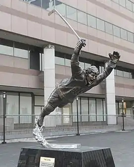 An 800-pound (360 kg)[1] bronze statue of Bobby Orr is installed outside Boston's TD Garden, in the U.S. state of Massachusetts.[2][3] The sculpture was designed by Harry Weber,[4] and unveiled on May 10, 2010.[5]