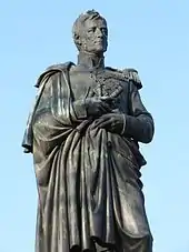 The Statue of Graf Vorontsov, Odessa, is a sculptural monument established in 1863 on the Sobor Square in Odesa in honor of Mikhail Semyonovich Vorontsov, Field Marshal, the General-Governor of Novorossiya Region and plenipotentiary governor of Bessarabia who was a graf until 1845, then knyaz from 1845. The sculptor is Friedrich Brugger, the pedestal was made under the command of Sevastopol 1st guild merchant P.A. Telyatnikov.[1] and the architect was Francesco Carlo Boffo.[2]