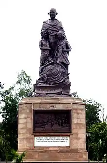 The statue of Mahatma Gandhi in Gandhi Maidan, Patna, is a public monument of India's father of Nation Mahatma Gandhi. The statue is the world's tallest bronze statue of Mahatma Gandhi. It was unveiled on 15 February 2013 by the then chief minister of Bihar, Nitish Kumar.[1] It was established by Government of Bihar at a cost of ₹35 crore.[2] The second tallest Gandhi statue turuvanur Chitradurga taluk and district karnataka
