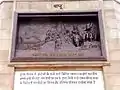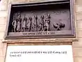 The statue is 72 feet (22 m) high with base and is made of bronze. It was sculpted by Ram Sutar's firm and is located on the western end of historic Gandhi Maidan, in front of St. Xavier's High School, Patna.[3] It shows Mahatma Gandhi standing affectionately with two children. The pedestal is 24 feet (7.3 m) high with four landmark events of Gandhi's life, Dandi March in 1930, Quit India movement in 1942, Champaran Satyagraha in 1917 and charkha as symbol of Gandhi is inscribed on it in large letters.[4]
