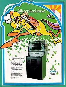 Steeplechase is an sports video game by released in arcades 1975 by Atari, Inc.[6] Developed by Atari subsidiary Kee Games, it simulates a steeplechase-style horse race. It was distributed in Japan by Nakamura Seisakusho (Namco) in 1976.