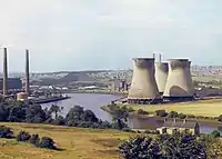 By the mid-1980s closure of the stations was being considered, and in 1984, was considered for a combined heat and power scheme.[72] After the privatisation of the Central Electricity Generating Board in 1989, the stations passed into the ownership of National Power.[73] After almost 37 years of use they were decommissioned in May 1991 as outdated and uneconomical to operate.[71][74] They had been overtaken technologically, and had lower generating capacity than newer plants such as Drax. Their closure coincided with that of a large number of coal mines in the North East of England, just after the privatisation of both the electricity industry and the National Coal Board in the early 1990s.[49][75][76]
