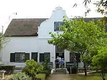 The Bleterman House in the museum complex depicts the period of c. 1789. The house was built by Hendrik Lodewyk Bletterman, Landdrost (Magistrate) of Stellenbosch from 1785–1795. This dwelling is a Cape Dutch H-shaped house and an examples of a gabled house from the 18th century.[4] The site on which Bletterman House is situated was purchased by Hendrik Lodewyk Bletterman in 1787. Since the Hertzog plan of 1817 shows a building on this site, it is assumed that Bletterman built the house sometime before that date. After his death in 1824, the house was sold to the Landdrost and Heemraden, and was converted into offices and a courtroom, becoming the "Stellenbosch Public Offices". The outbuilding was renovated and equipped with 50 school benches and served as a school for slaves. The school was officially opened in September 1825,with Erasmus Smit as teacher. There is no record that the main house was ever used as a residence after Bletterman's death. The Stellenbosch Police used the buildings as their headquarters from about 1879–1969 when it was acquired by the Stellenbosch Museum.[5] The house is listed as a provincial heritage site.[6]