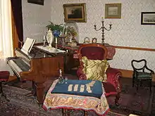 An upper storey was added to the house during the second half of the 19th century. The house is furnished to reflect the interior of a typical middle-class Stellenbosch home during the period 1840 – 1880, more-or-less the time it was occupied by Bergh and his family. Heavy mahogany furniture in the prevailing English taste was very fashionable at the time and the Victorian penchant for clutter often made it difficult to move about in the drawing room. Wallpaper and family portraits are further indications of how sombre interior decoration was at the time – particularly after the Great Exhibition in 1851. The garden is laid out in the style of the period with roses and other shrubs that were popular during the mid-19th century.