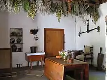 The Schreuder House is the first period house in the museum complex and is furnished according to the period c. 1709. The house was built in August 1707 by Sebastian Schreuder, who was a German messenger of the court of the Dutch East India Company.[1] It is a pioneer cottage with a thatched roof and clay floor. Because window glass had to be imported from Holland, the windows are made of linen or gauze stretched over a frame with beeswax to seal the cloth against the elements. During a hard downpour, the housewife simply closed the outside shutters; in fine weather the catches were released, the whole frame was lifted out, and fresh air was let in.[2] The house was declared a monument in 1974, and is currently listed as a Grade II Western Cape provincial heritage site.[3]
