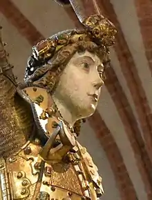To commemorate the victory at Brunkeberg, Sten Sture ordered a wooden monument for Storkyrkan in Stockholm, Saint George and the Dragon, built in the late 1480s. Saint George's horse carries the coat of arms of the Tre Sjöblad family, Sten Sture's coat of arms, and the monument is therefore interpreted as a symbol of his victory over Denmark, the dragon. A bronze copy of the monument was placed on Köpmantorget in Stockholm in 1912.