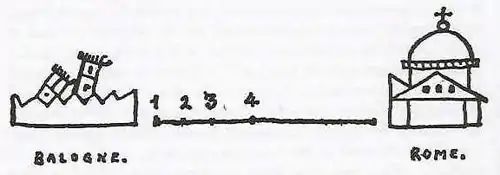 In Stendhal's 1822 classic On Love he describes or compares the "birth of love", in which the love object is 'crystallized' in the mind, as being a process similar or analogous to a trip to Rome. In the analogy, the city of Bologna represents indifference and Rome represents perfect love: