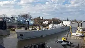 Due to increased competition from other methods of transport for packaged goods Fort William was laid up at Hamilton, Ontario in 1981.[2] The vessel was purchased in 1982 by the Lake Ontario Cement Company, now ESSROC Canada, which converted the ship to a self-unloading cement carrier. The ship was renamed Stephen B. Roman in 1983, named for a prominent Canadian mining engineer.[3] In March 2007, the ship ran aground at the mouth of the Genesee River. The ship was unstuck, but silt build-up at the entrance to the port of Rochester, New York prevented the ship from entering. This led to 7,000 shipments of concrete by truck.[2][4] In 2017, Stephen B. Roman was acquired by McKeil Marine. The purchase was announced on January 19, 2017.[5]