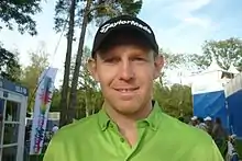 The following year, Gallacher defended his title with a one stroke victory at the 2014 Omega Dubai Desert Classic for his third European Tour victory.[3] He is the first golfer to ever successfully defend the title. Five years after his title defense in Dubai, he won again on the European Tour by claiming the 2019 Hero Indian Open, India's premier event, with a birdie on the 18th at the Gary Player course at the DLF Golf and Country Club near Delhi, India, despite a quadruple-bogey on the 7th. His son Jack caddied for him during his win in India.[4][5]
