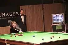 Dennis Taylor and Ray Reardon have argued that O'Sullivan has superseded Hendry as the sport's greatest player.[95][96] In 2005, John Higgins, who competed with both players at their respective peaks, concurred, proclaiming O'Sullivan as "the best that's ever played the game".[97] Steve Davis is more divided on the issue, considering O'Sullivan to be the best player but Hendry the greatest winner.[98] White also regards O'Sullivan as the best player, but considers Davis his toughest opponent.[99] Dell Hill, a snooker coach who has worked with some of the game's top players, also considers O'Sullivan the best player "without a shadow of a doubt", but as of 2015 believed that O'Sullivan had "under-achieved" next to Hendry.[100] Sean Ingle, chief sports journalist for The Guardian, continues to make the case for Hendry as the sport's greatest player.[101]