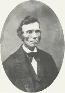 In January 1856, Post wrote to Sidney Rigdon, Smith's former counselor, about the disordered state of Mormonism. Rigdon had briefly led his own church following Smith's martyrdom, but it had collapsed in 1848. In March, Rigdon responded to Post's letter with a revelation commanding him to assist in reestablishing the Rigdonite organization. Post eagerly embraced Rigdon's prophetic claims and became an able advocate of his cause, with an 1866 revelation designating him Rigdon's "spokesman."[6] Post's non-Mormon wife, Jane, converted to the Rigdonite church in 1865 and was ordained an elder in 1868.[7]