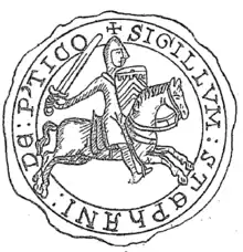 Stephen was one of twelve barons who sat on the council that advised the emperor.[21] In Constantinople, he seems to have rejoined the following of Louis of Blois. On 3 April 1205, he was at the siege of Adrianople, which had been occupied by Tsar Kaloyan of Bulgaria. He joined Louis and Renaud of Montmirail on a foraging expedition and, on 14 April, all three were killed while pursuing a Cuman force. According to the necrology of Chartres, however, his requiem was celebrated on 17 April.[6]
