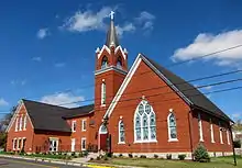 The earliest organized religious services in Stephens City began in 1790s when a Methodist Episcopal church was created in the town.[15] The first church structure, the "Methodist Episcopal Church in Stephensburg", dates from 1791. The current Stephens City United Methodist Church was constructed near that historic site.[84]