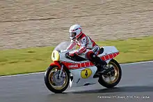 Baker's good results earned him a factory sponsored ride with the Yamaha factory team for the 1977 season.[1] He began the year by winning the prestigious Daytona 200 before traveling to Europe to compete in the world championships.[1][7][8] Baker won the 1977 Formula 750 title and finished second to Barry Sheene in the 500cc world championship.[9][10]