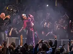 Previously described by WWE as the greatest wrestler never to have performed for that promotion,[20] Sting finally joined WWE in 2014, making his first appearance at Survivor Series and having his debut match at WrestleMania 31 the following year. His last match in WWE came at Night of Champions in September 2015, which also marked his sole WWE pay-per-view main event for the WWE World Heavyweight Championship in the organization, losing to Seth Rollins.[21] Sting headlined the WWE Hall of Fame Class of 2016 on April 2, where he announced his retirement.[22] His induction rendered him the second performer to be inducted while still an active WWE wrestler, after Ric Flair. In late 2020, Sting signed with AEW, coming out of retirement and had his first match in over five years at the promotion's Revolution pay-per-view on March 7, 2021, a tag team cinematic Street Fight that he and Darby Allin won. Sting then had his first live wrestling match in over five years at Double or Nothing on May 30, 2021, another tag team match that he and Allin won.