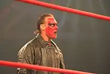On October 12 at Bound for Glory IV, Sting challenged Samoa Joe for the TNA World Heavyweight Championship and was successful in claiming the title, after Kevin Nash returned and hit Joe with Sting's baseball bat.[59] After Bound for Glory, Sting with Kurt Angle, Booker T, Kevin Nash and Scott Steiner created The Main Event Mafia, a stable formed by veterans and former World Champions and feuded with younger wrestlers, called TNA Frontline. Sting defended the title against Frontline's A. J. Styles at Turning Point and Rhino on January 11 at Genesis. Sting also feuded with the leader of The Main Event Mafia Kurt Angle. At Against All Odds, Sting defended the title against Angle, Brother Ray and Brother Devon. He then faced off with Angle in a singles match at Destination X.[60][61][62][63] At Lockdown, Sting lost the TNA World Heavyweight Championship to Mick Foley inside the Six Sides of Steel, ending his reign at 189 days (his longest world title reign for any organization).[64] On May 24 at Sacrifice, Sting defeated Kurt Angle to become the new Godfather of the Main Event Mafia.[65] On June 21 at Slammiversary, Sting defeated Matt Morgan in a singles match, thus preventing Morgan from joining the Main Event Mafia.[66] On the following episode of Impact!, Sting's fellow Main Event Mafia members attacked him, removed him from the group, and Kurt Angle reclaimed his role as Godfather. The following week, Sting took his revenge upon the Mafia, when he attacked every member of the group and stole Angle's world heavyweight championship belt, becoming a fully fledged face as a result. On July 19 at Victory Road, Sting was defeated by new Main Event Mafia member Samoa Joe in a singles match after the debuting Taz interfered on Joe's behalf.[67] On August 16 at Hard Justice, Sting unsuccessfully challenged Angle for the TNA World Heavyweight Championship in a triple threat match, which also included Matt Morgan.[68] On September 20 at No Surrender, Sting lost a five-way match for the TNA World Heavyweight Championship that also included Styles, Hernandez, Kurt Angle, and Matt Morgan. Instead of pinning Angle, he opted to attack Morgan, to allow Styles to pin Angle and become the new World Heavyweight Champion.[69] As a token of gratitude, Styles offered to give him a title shot at the following month's PPV Bound for Glory in a match billed as possibly being Sting's retirement match.[70] At the PPV, Styles defeated Sting to retain his title, ending Sting's undefeated streak at Bound for Glory. After the match he announced that he didn't know whether he would continue his career or not, Saying that "the way you fans are reacting right now, makes me wanna stay forever!"[71] At the end of the year the match was voted the match of the year by the fans of TNA.[72]
