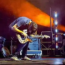 Malkmus currently plays a Fender Stratocaster and a Guild S-100.[32] Other guitars used are a 1960s Fender Jazzmaster that can be traced back to the Brighten The Corners era, a Gibson Les Paul Deluxe, and a Fender Stratocaster that was his guitar of choice during the majority of his time with Pavement. He used a Gibson SG with Pavement during the Crooked Rain, Crooked Rain era. For the 2010 Pavement reunion tour he used his Stratocaster extensively. During his 2011 tour in support of Mirror Traffic he played a Guild S-100. He has also played a Danelectro Silvertone (Sears model dating to 1962 or 1963) for one-off solo shows.