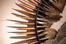 One of Sykes's best-known work is the Gethsemane Chapel mosaic in The Cathedral of St Michael, Coventry.[15][16][17] Sykes was invited to contribute to the cathedral by its architect, Basil Spence, who had himself also been a camouflage officer during the war.[18] The figure of the "consciously Byzantine" angel,[19] St Michael, and Jesus's disciples asleep at Gethsemane are modelled like his pottery figures in reverse relief, but then cast in concrete. The background is covered in gold leaf and blue tesserae, forming a mosaic. According to Tanya Harrod in The Independent, "The result was dazzling."[1]