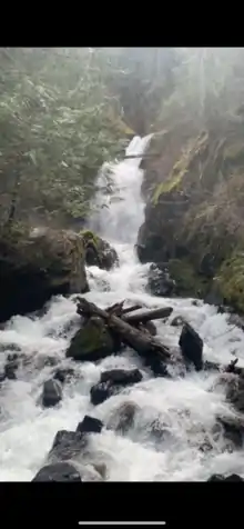Stewart Creek is a small creek in the Regional District of Central Kootenay in the West Kootenay region of British Columbia, Canada. The creek is a tributary of the Salmo River and has its source in the Selkirk Mountains close to the town of Ymir. The name was adopted in 1930.[1] Its source is the peaks of Round Mountain, the same source as that of Quartz Creek and is approximately 2 km north of Ymir. There is a rest area featuring a small waterfall with a picnic area on Highway 6 at Stewart Creek.[2][3][4]