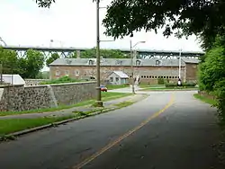 The Saint Helen Island Fort (French: Fort de l'Île Sainte-Hélène), a historic site on Saint Helen's Island[1] in the city of Montreal, Quebec, was constructed in the early 1820s as an arsenal in the defensive chain of forts built to protect Canada from a threat of American invasion. Although not heavily fortified, it served an important purpose as the central artillery depot for all forts west, and in the Richelieu River Valley, known as the Valley of the Forts. These included Fort Henry and Fort Lennox. The red stone used to build the Fort is a breccia quarried on the island, which is situated in the St. Lawrence River between the island of Montreal and the south shore.