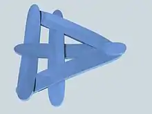 A stick bomb is a (mechanical) spring-loaded device constructed out of flat sticks woven together under a bending moment. Other names for stick bombs include Chinese stick puzzles,[1] Cobra wave,[2] and frame bombs. Stick bombs are created for fun and as art, not for any practical use.