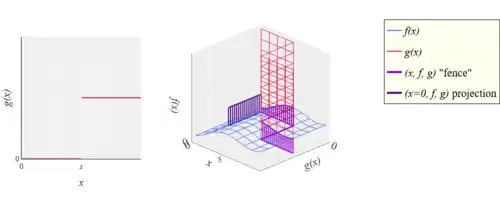 A 3D plot, with , , and all along orthogonal axes, leads to a geometric interpretation of the Riemann–Stieltjes integral.[8]