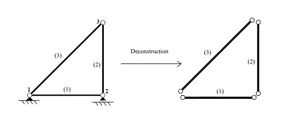 Once the elements are identified, the structure is disconnected at the nodes, the points which connect the different elements together.