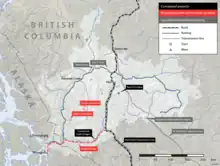 Several large new mining developments in the 21st century have generated concern over potential impacts to water quality and fish habitat in the Stikine and Iskut rivers. The Red Chris copper/gold mine near Iskut, BC began operation in 2015, despite concerns raised by the Tlingit tribe and downstream communities in Alaska.[122] The boroughs of Wrangell and Petersburg have expressed concern over the safety of the tailings dam at the Red Chris mine, which is operated by Imperial Metals, the owner of the Mount Polley mine which suffered a tailings dam failure in 2014 that contaminated Quesnel Lake.[123][124] Tahltan tribal leaders have generally been supportive of this mine and some others due to the economic benefits for the region; however, they have opposed projects that impact sites of cultural significance.[122]