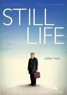 Still Life is a 2013 drama film written and directed by Uberto Pasolini.[1][2] The film was presented at the 70th Venice Film Festival , where it won the award for Best Director in the category "Orizzonti".[3] At the Reykjavik International Film Festival, Still Life received the top award (Golden Puffin) as well as the FIPRESCI Award.[4] It also received the Black Pearl award (the highest award) at the Abu Dhabi Film Festival for "its humanity, empathy and grace in treating grief, solitude and death"; for his performance, Eddie Marsan won the Best British Actor award at the 2014 Edinburgh International Film Festival.[5]
