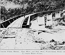 | Larry's Creek | 55 mi 19 ch (88.9 km) | 1 July 1914 | 17 March 1968 | 112 m (367 ft) | ![]() Larry River bridge 74