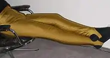 Stirrup pants (or stirrup leggings) are a type of close-fitting ladies' pant that tapers at the ankle, similar to leggings, except that the material extends to a band, or strap, that is worn under the arch of the foot to hold the pant leg in place. The band of material is often elasticized to prevent the material around the foot from tearing. Stirrup pants were originally sportswear for women, and remain sportswear for horse riding and skiing. However, they have come in and out of fashion during the 20th and early 21st centuries, peaking in popularity as street fashion during the 1980s to the early 1990s .