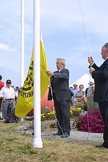 It is unclear exactly where the first shows were held, with references to 'Churchtown' (the land now occupied by the Church Hall [now the Stithians Centre] and the village school) appearing in The West Briton on 27 July 1838.[1] The 51st show (1885) was held in a field next to the Seven Stars hotel.[2] For many years (certainly in living memory) the show was held in the fields which form part of the Ennis and Carbis Farm, with the playing fields in the heart of the village forming the hub from 1938. Fields on the glebe land were used as the Show expanded, and it was increased rental on this land that caused the relocation of the Show in 1992.