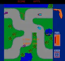 The player controls a stock racing car and must be the first to win a cross country race.