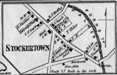 Stockertown was named for the Stockers, a Swiss family who settled on the land in the late 18th century.[7] The post village was referred to as Stockersville as of 1845, and described as a very fertile area.[8] In late 1900, by which time the village was being called Stockertown, a group of the village's citizens petitioned Northampton County Court to grant the community the status of a borough. That petition was granted and, early in 1901, the borough government was organized.